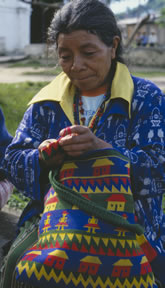 Shoulder bags are crocheted by both men and women in Guatemala.