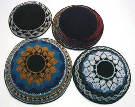 Tapestry crocheted yarmulke (also called kippas and skullcaps) are worn by Jewish men.